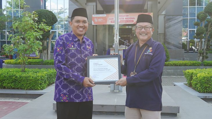 Pelaksana Tugas (Plt) Kepala Dinas Komunikasi, Informatika, Persandian dan Statistik (Diskominfosantik) Provinsi Sulawesi Tengah, Wahyu Agus Pratama menghadiri sekaligus menerima penghargaan pada Apel Pagi Peringatan Hari Statistik Nasional (HSN) Tahun 2025 yang digelar di halaman Kantor BPS Provinsi Sulawesi Tengah, Jumat (26/9/2025). Foto : PPID Diskominfosantik Sulteng